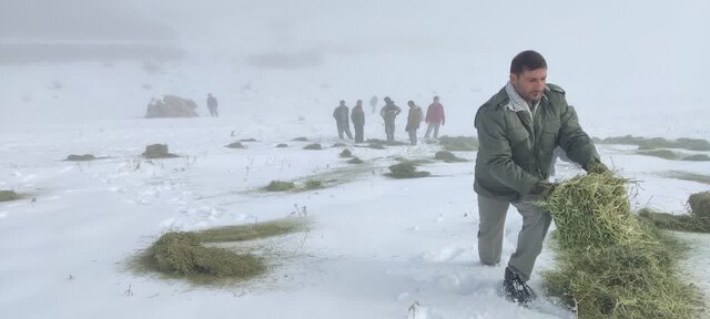توزیع علوفه خشک در پناهگاه حیات وحش سفیدکوه ازنا